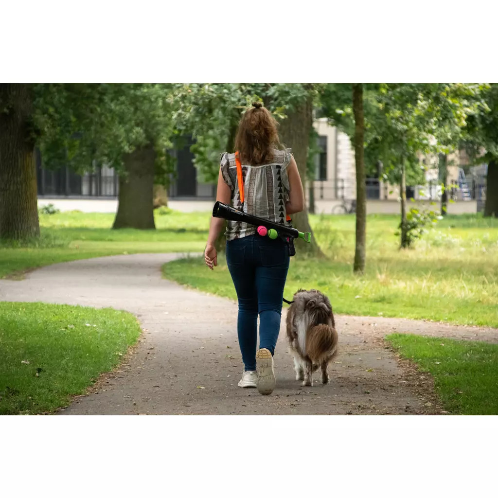 Emeld új magasságokba az apportírozást a Dog Comets - Comet Launcherrel! Ez a labdadobó akár 20 méteres távolságra is kilőheti a labdát egyetlen gombnyomással. Tökéletes a nagy energiájú kutyák intenzív testmozgásához, a gazdi részéről nem igényel különösebb erőfeszítést. A mellékelt ingyenes hordozópántnak köszönhetően a Comet Launcher könnyen bárhová magaddal viheted. A teniszlabdaágyú 2 labdatartóval is fel van szerelve, amelyekben a 2 db mellékelt Dog Comets teniszlabda (M) tárolható.