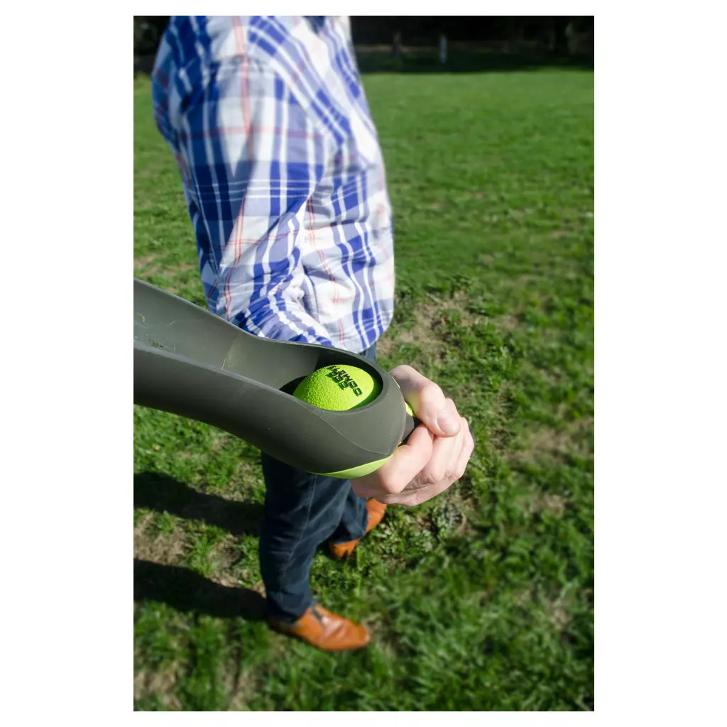 Egyedi kialakításának köszönhetően ez a dobó háromszor messzebbre dobja a labdát, mint más labdahajítók, ráadásul a labda kéz nélkül is felvehető. Egy kis erőfeszítéssel a labda akár 60 méterre is feldobható! Alkalmas fej feletti és kéz alatti dobásokhoz. A csúszásgátló bevonatnak köszönhetően a dobó nem csúszik ki a kézből, és a zsinórnak köszönhetően könnyen a csuklóra rögzíthető.